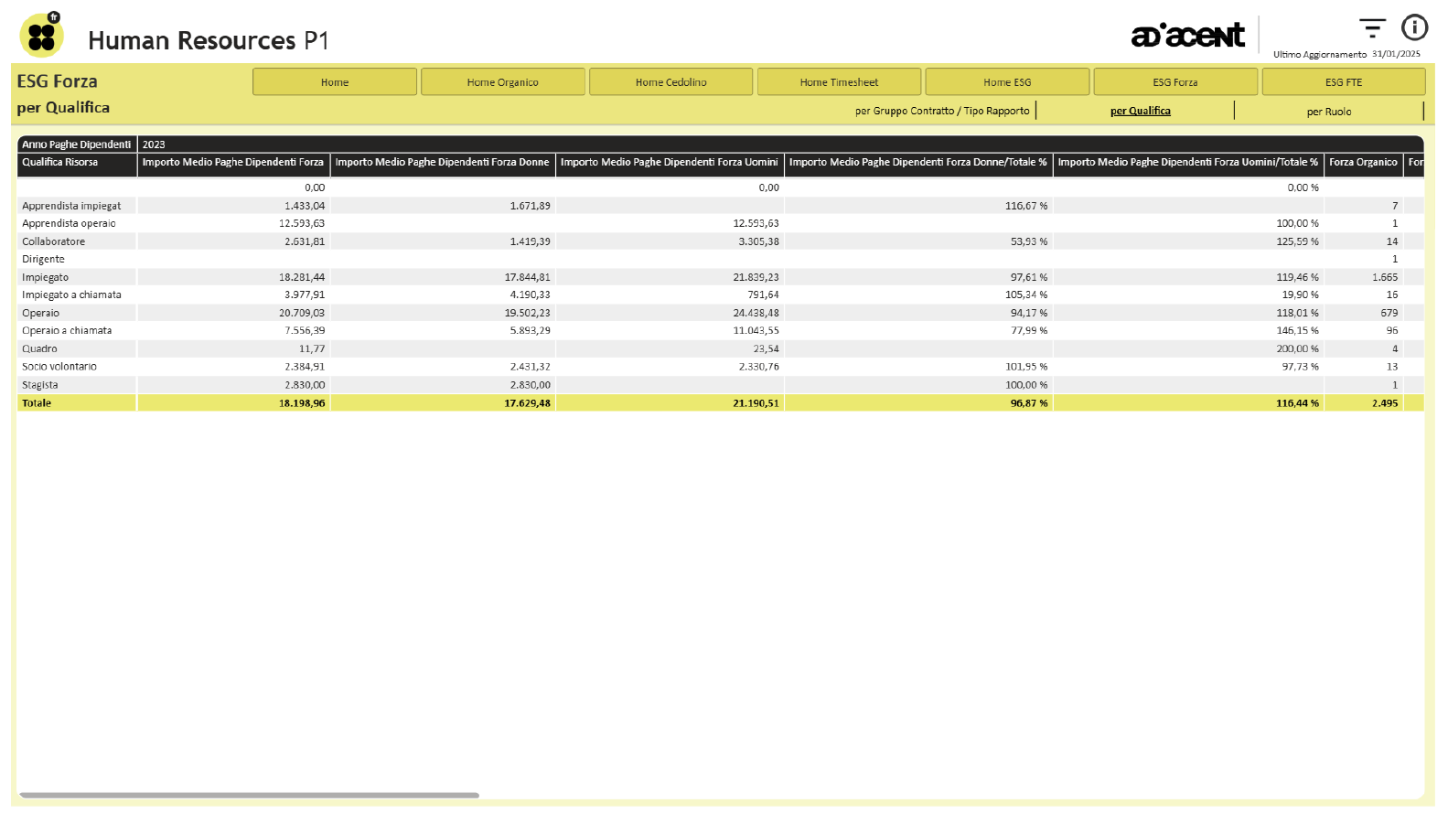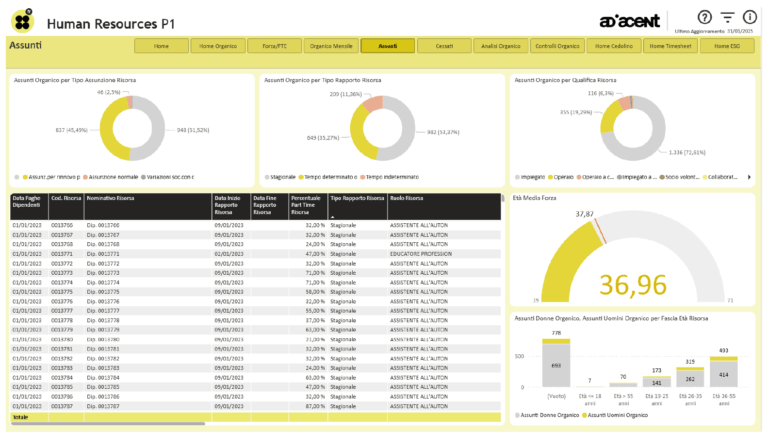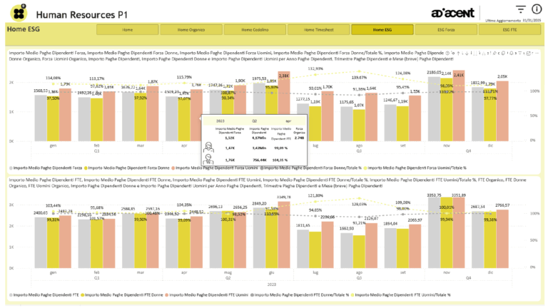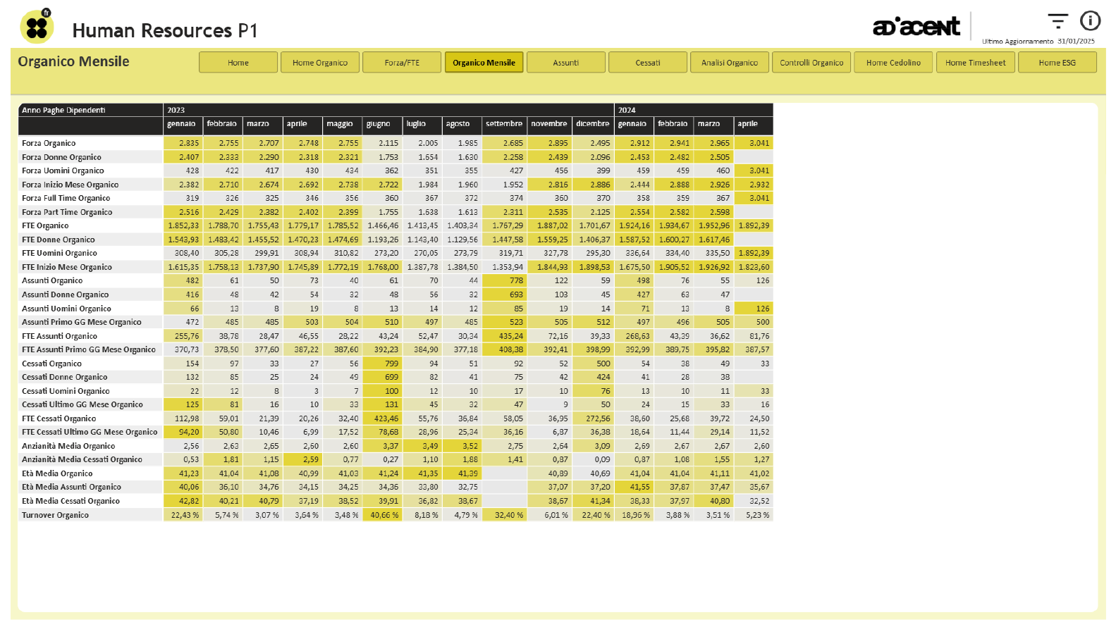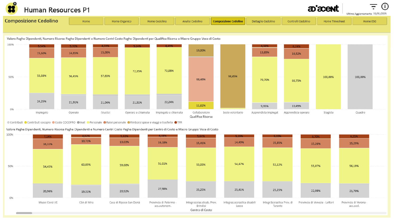 La piattaforma consente di raccogliere, normalizzare e analizzare dati provenienti da fonti diverse (gestionali HR, sistemi di rilevazione presenze, software paghe), restituendo report e dashboard navigabili secondo molteplici dimensioni analitiche.